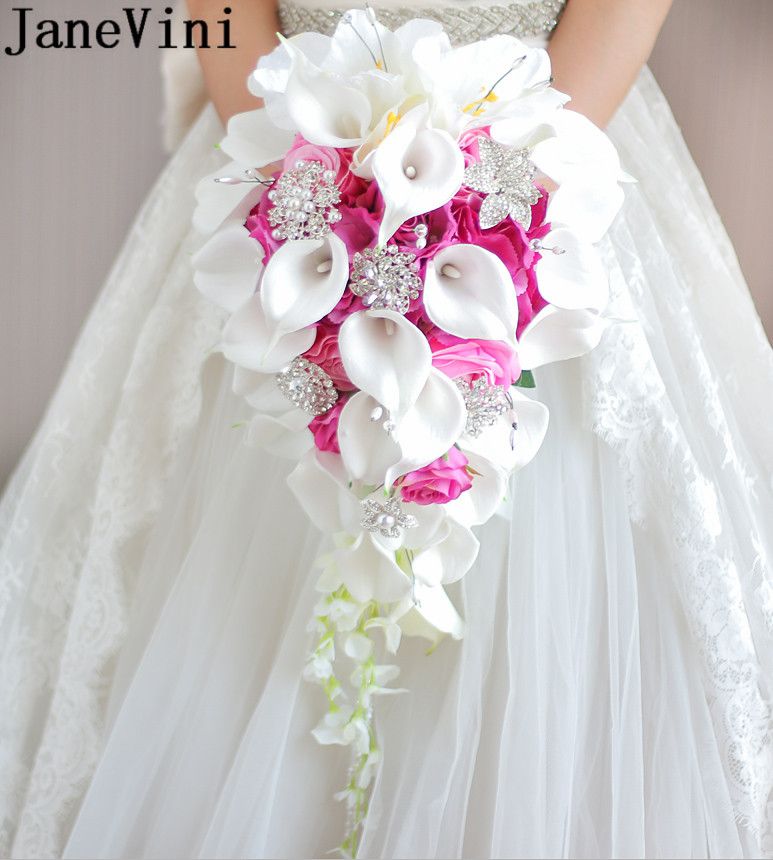 Grosshandel Janevini Wasserfall Rosa Hochzeit Blumen Brautstrausse Kunstliche Perlen Kristall Brautstrausse Blumenstrauss De Mariage Rose 2019 Von