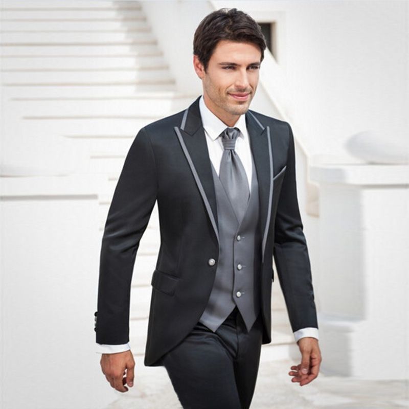 Grosshandel Schwarz Brautigam Smoking Mann Klagen Hochzeitsanzug Grau Spitzen Revers Slim Fit Groomsmen Blazer 3 Stuck Jacke Hosen Weste Nach Mass