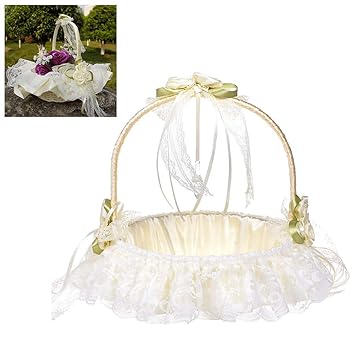 Weisser Satin Perlen Hochzeit Blumenmadchen Korb Bowknot De