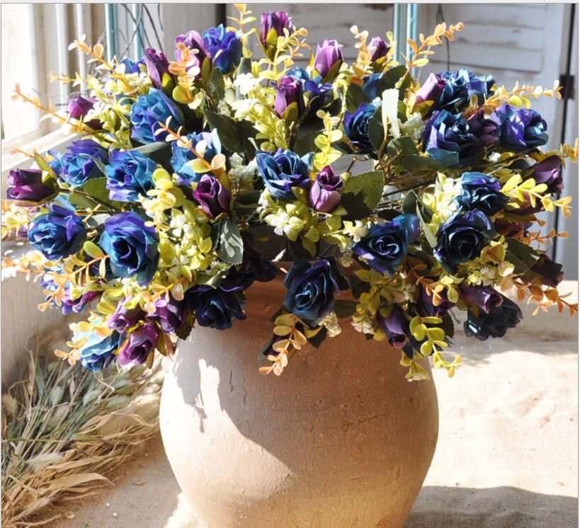 Grosshandel Grosshandel 10 Kopfe Vintage Rose Kunstliche Seide Stoff Blumen Franzosisch Stil Pflanzen Dekorieren Blumen Home Hochzeit Display Dekoration