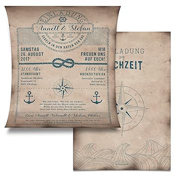 Hochzeit Einladungskarten 40 Stuck Schatzkarte Als Flaschenpost Seemann Anker Einladung