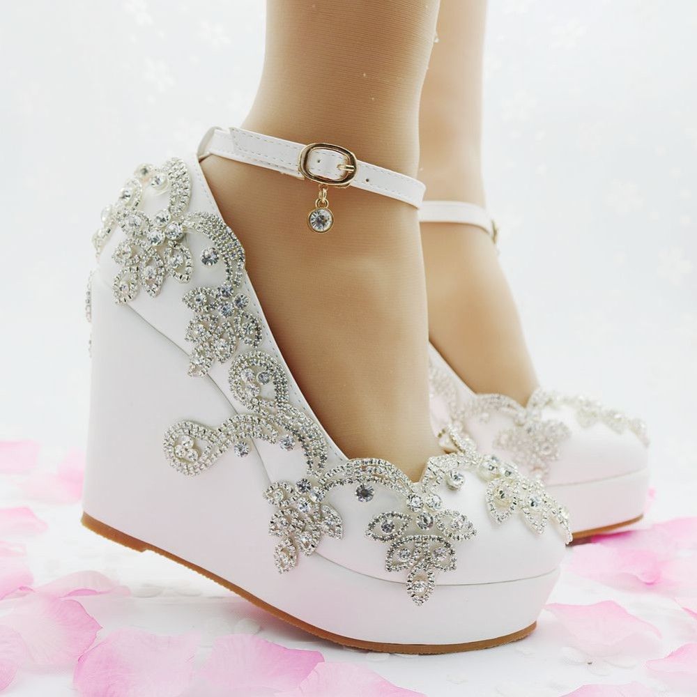 Grosshandel New Fashion Heels Wedges Sandalen Strass Sandalen Fur Pumps Party Sexy Weisse Hochzeit Schuhe High Heel Frauen Schuhe Von Fangyingjie