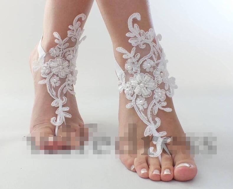 Grosshandel Wunderschone Brautschuhe Weiss Fur Strand Hochzeit Free Size Perlen Braut Zubehor Spitze Applikationen Fusskette Auf Lager Von Newdeve