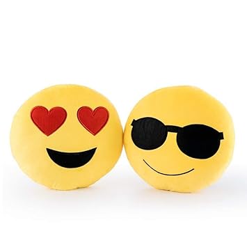 Longble 2stk Emoji Kissen Rund Set Suss Gelb Plusch Brautpaar