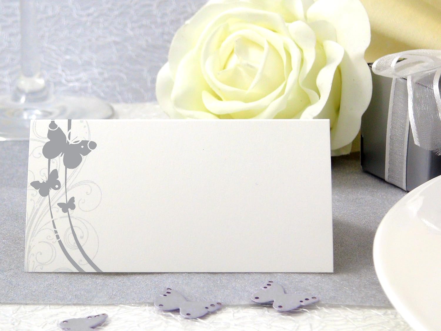 50x Tischkarten Liebesfalter Silber Platzkarten