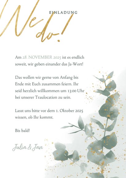 Langliche Einladungskarte Hochzeit Eukalyptusblatt