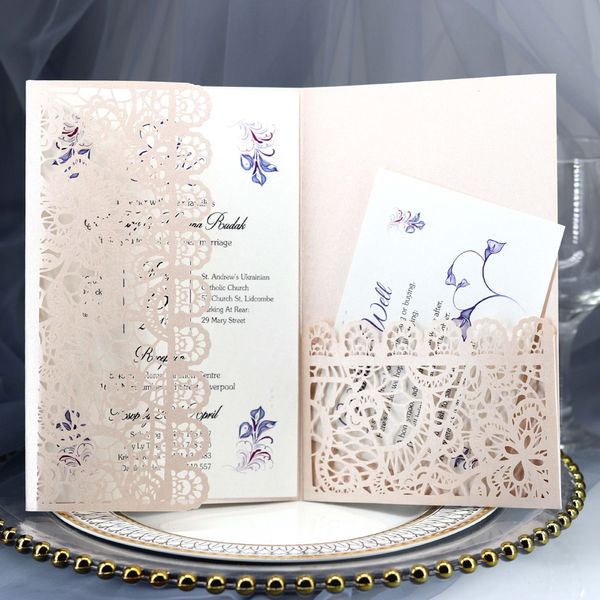 Grosshandel Erroten Rosa Schimmer Laser Schnitt Einladungs Karten Fur Hochzeit Diy Taschen Brautparty Einladung Druckbare Spitze Hochzeit