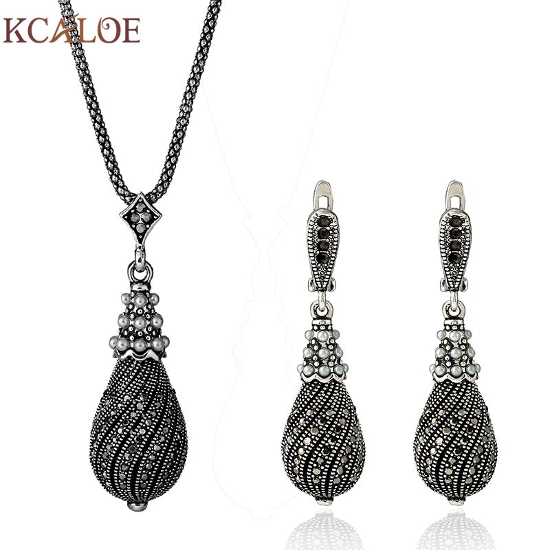 Grosshandel Kcaloe Luxus Vintage Frauen Hochzeit Schmuck Sets Turkei Antike Schwarze Kristall Strass Ohrringe Halskette Schmuck Set Von Nyk8 30 68