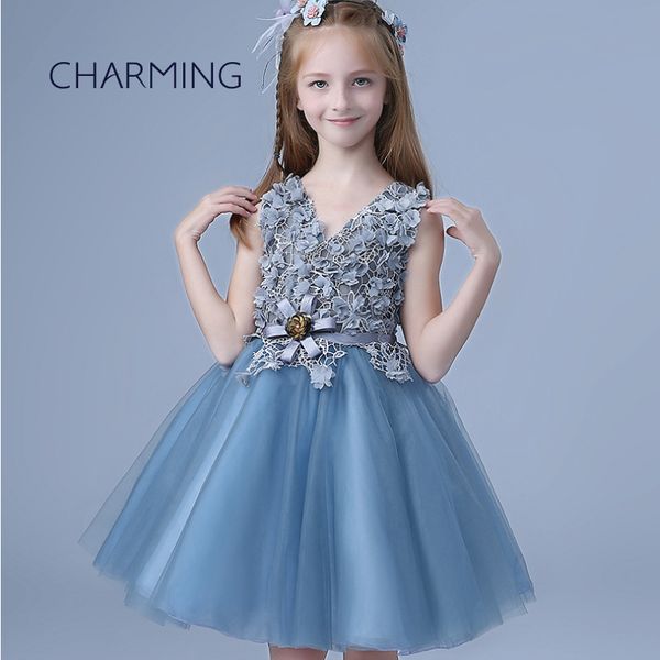 2017new Blaue Farbe Kinder Madchen Blumen Prinzessin Kleid