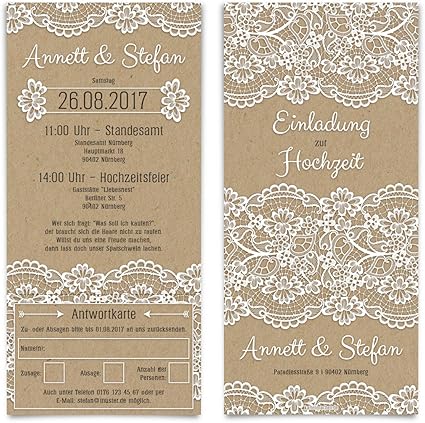10x Vintage Einladung Zur Hochzeit Hochzeitseinladungen Kraftpapier Spitze Rustikal Druck Und Umschlag