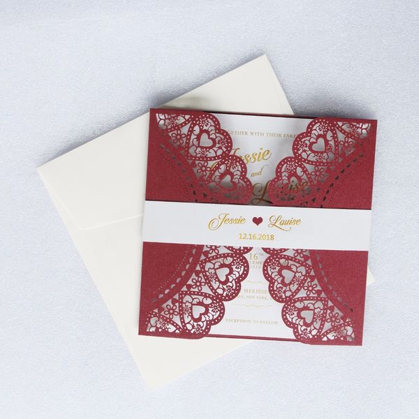 Grosshandel Elegante Marsala Burgund Pocket Hochzeitseinladungen Die Cut Laser Cut Jacken Hochzeitseinladungen 20 Farben Erhaltlich Von Cryastal