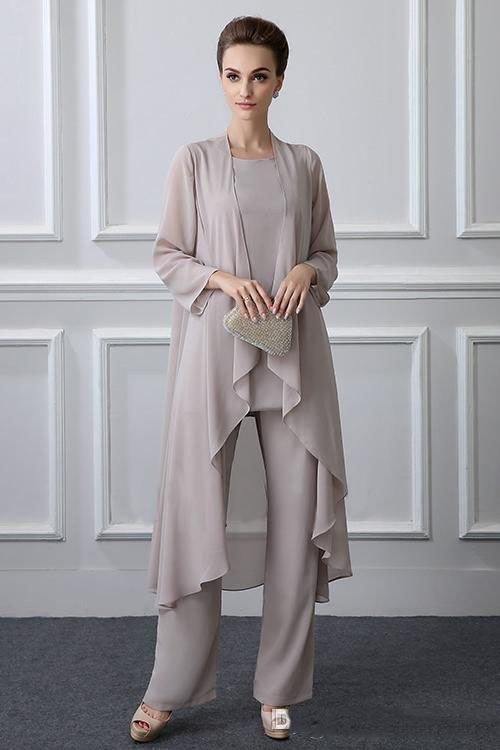 Grosshandel Einfache Elegante Mutter Der Braut Pant Suits Mit Jacke Chiffon Strand Hochzeit Gast Brautigam Kleider Gunstige Mutter Outfit Lange