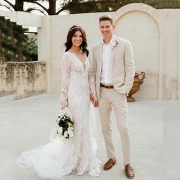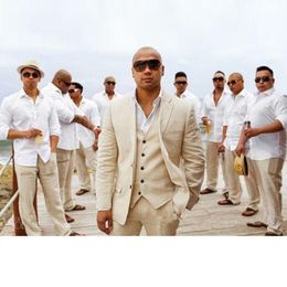 New Beige Leinen Hochzeit Anzuge Strand Brautigam Smoking 3 Stuck Jacke Hose Weste Brautigam Manner Anzuge Trauzeuge Blazer Nach Mass