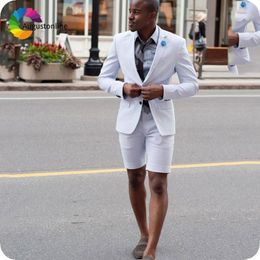 Sommer Strand Weiss Hochzeit Manner Anzuge Kurze Hosen Slim Fit Brautigam Smoking Prom Wear Groomsmen Anzuge Kostum Homme Terno Masculino