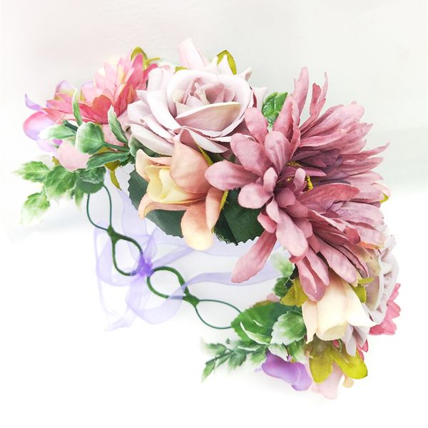 Grosshandel Frauen Madchen Schonheit Festliche Lila Hochzeit Natur Boho Blume Haar Girlande Krone Stirnband Blumenkranz Haarband Von Dushiring002
