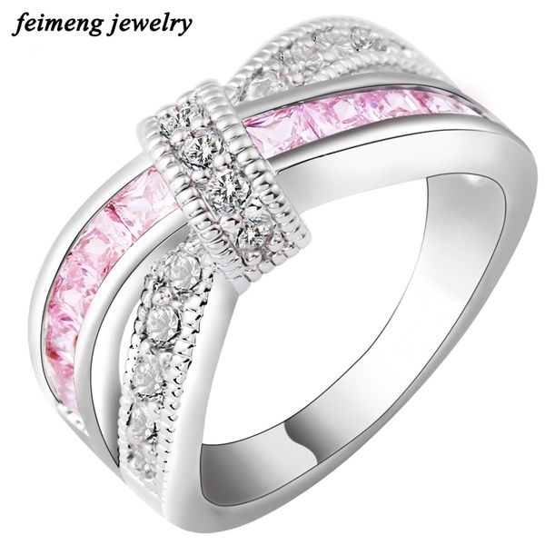 Grosshandel Female Pink Cross Ring Mode Weissgold Gefullt Schmuck Vintage Hochzeit Ringe Fur Frauen Geburtstag Stein Valentinstag Geschenke Von Duoyun